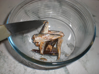 mientras tanto en un cuenco ve poniendo el resto de lo que será tu relleno, en mi caso las sardinillas :)